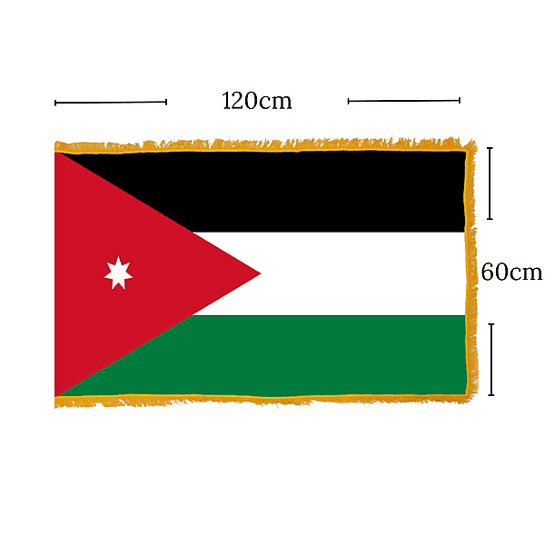 Enhance your executive office, lobby, or conference room with this complete, professional flag display. It features a premium, vibrant Jordanian flag paired with an elegant, polished golden flagpole and a sturdy, weighted circular base. Designed for a majestic presence and sophisticated background. Perfect for corporate and governmental settings in Jordan.